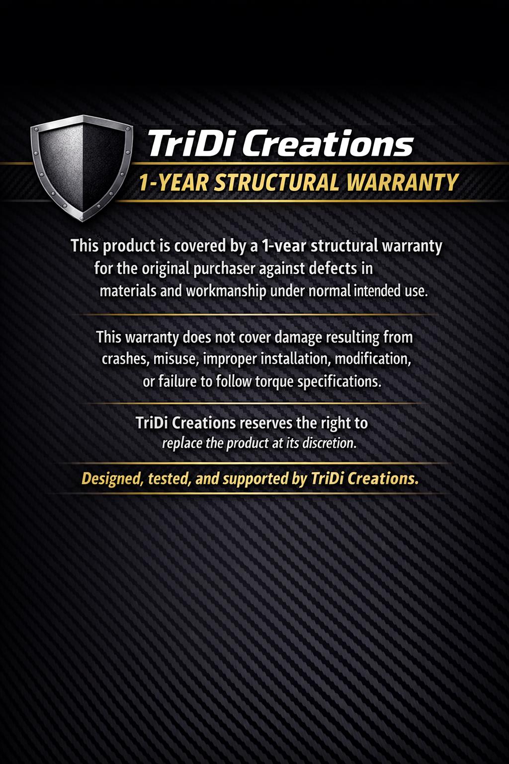 TriDi Creations 1-Year Structural Warranty
